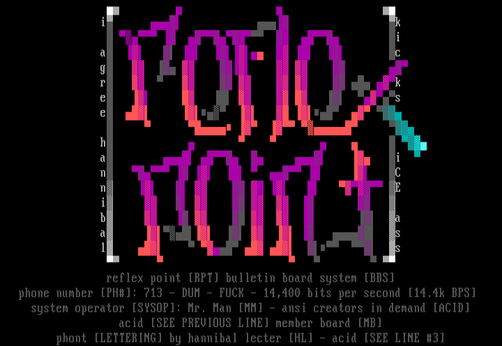 rd system BBS phone number PH: 713 - DUM - FUCK -