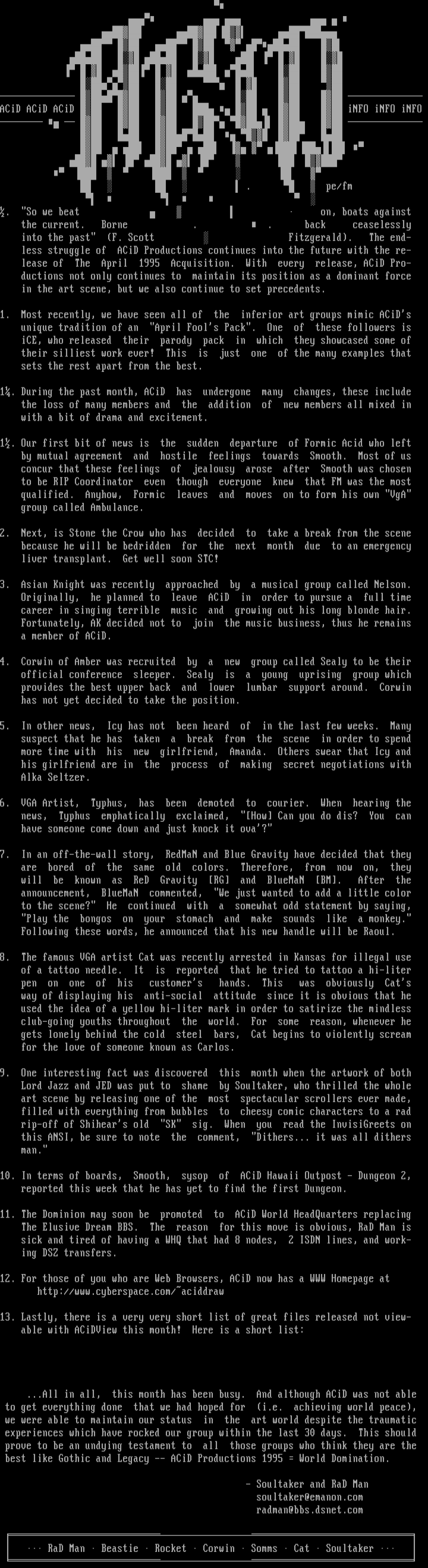 12. For those of you who are Web Browsers, ACiD now has a WWW Homepage at