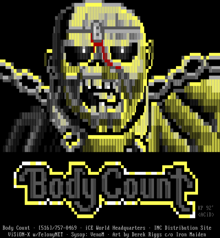 ViSiON-X w/FelonyNET Sysop: VenoM Art by Derek Riggs