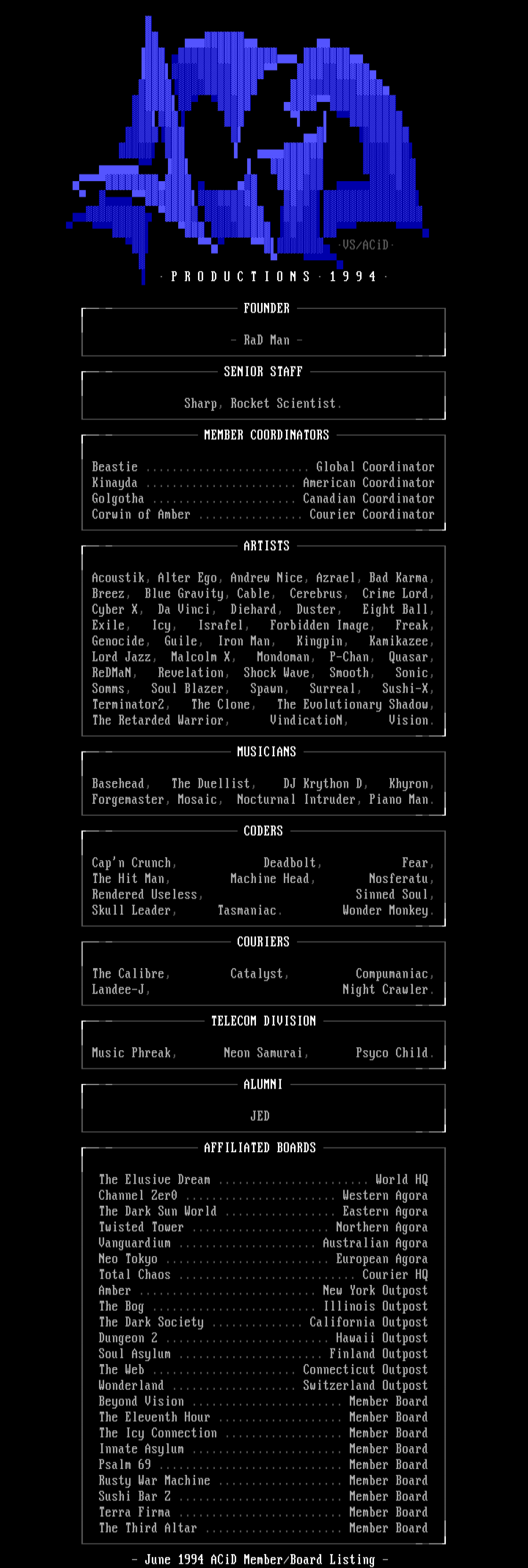 - June 1994 ACiD Member/Board Listing -