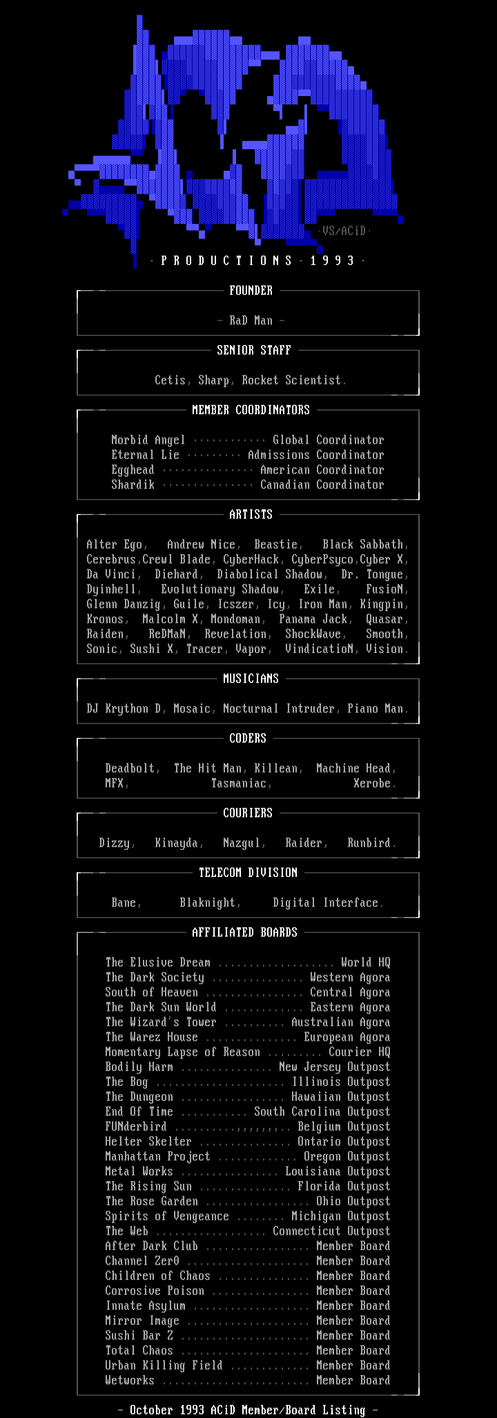 - October 1993 ACiD Member/Board Listing -