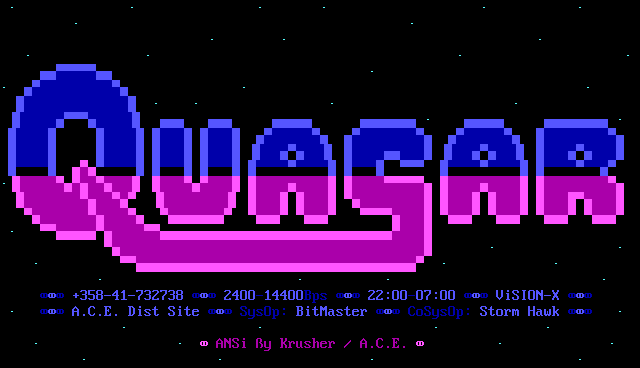A.C.E. Dist Site SysOp: BitMaster CoSysOp: Storm Hawk