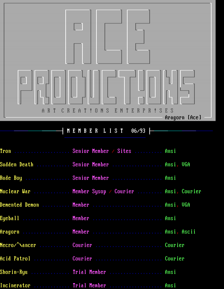 Aragorn ................. Member ......................... Ansi, Ascii