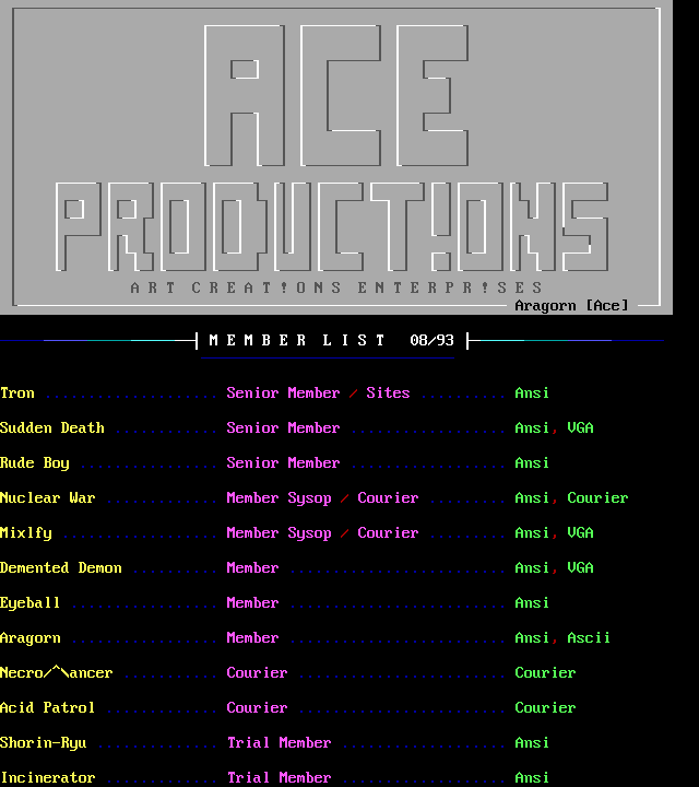 Mixlfy .................. Member Sysop / Courier ......... Ansi, VGA