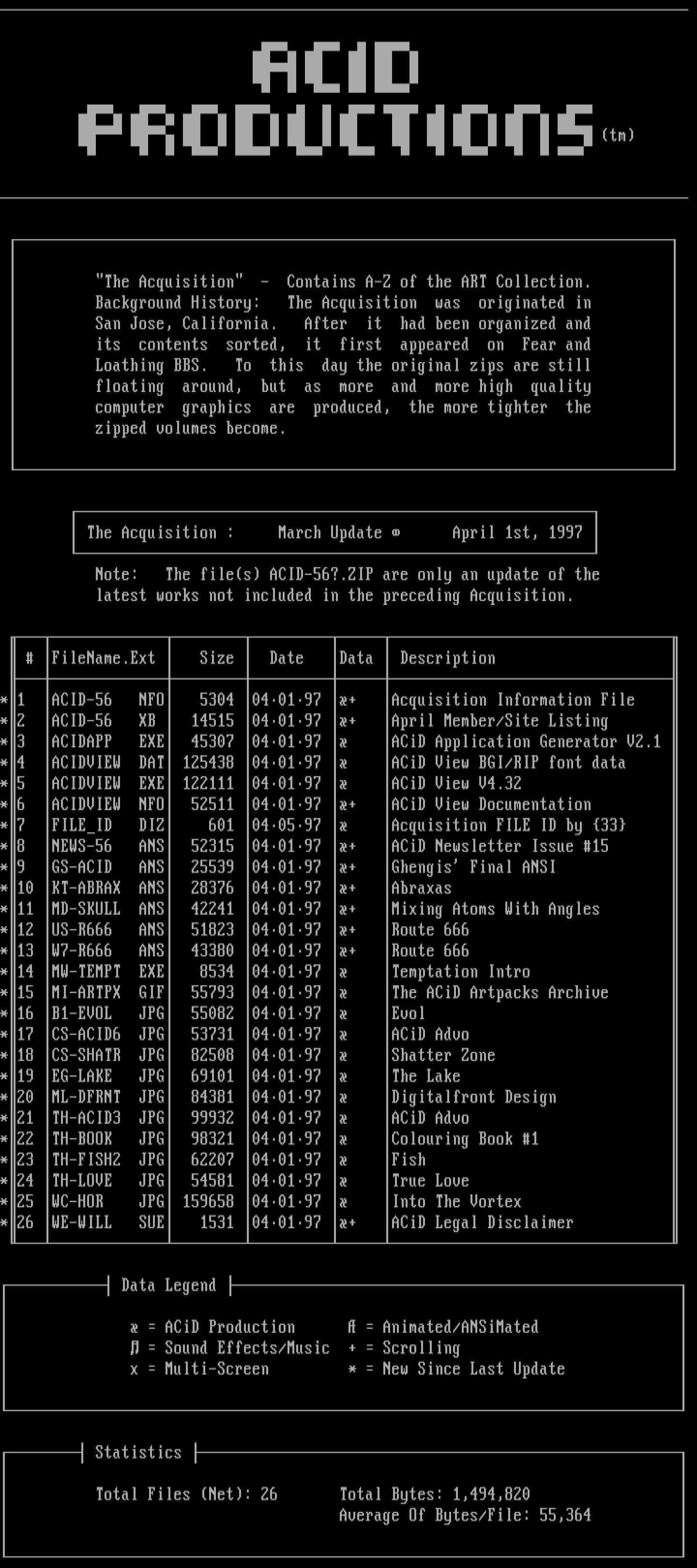 *1 ACID-56 NFO 5304 040197 + Acquisition Information File