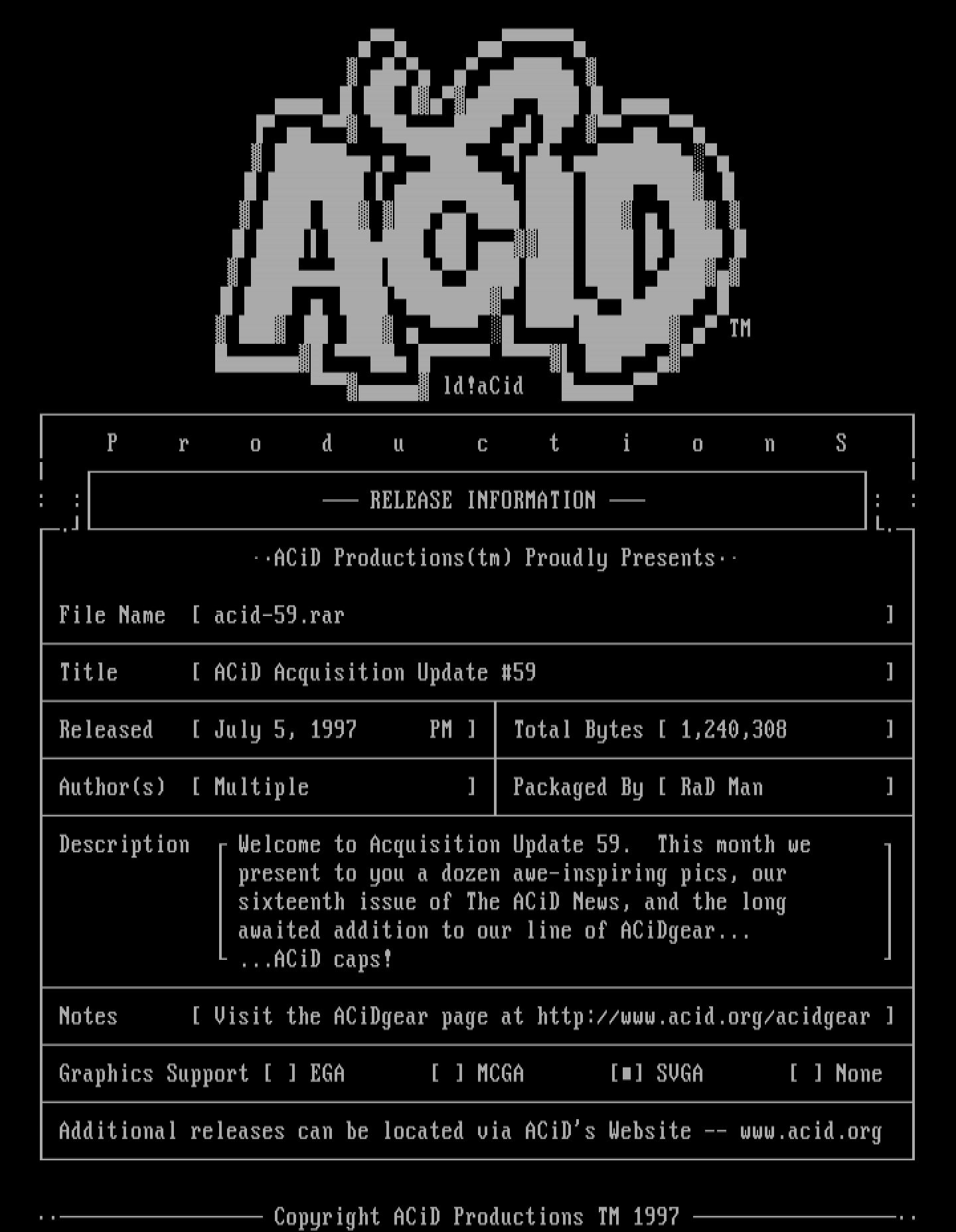 Additional releases can be located via ACiDs Website -- www.acid.org