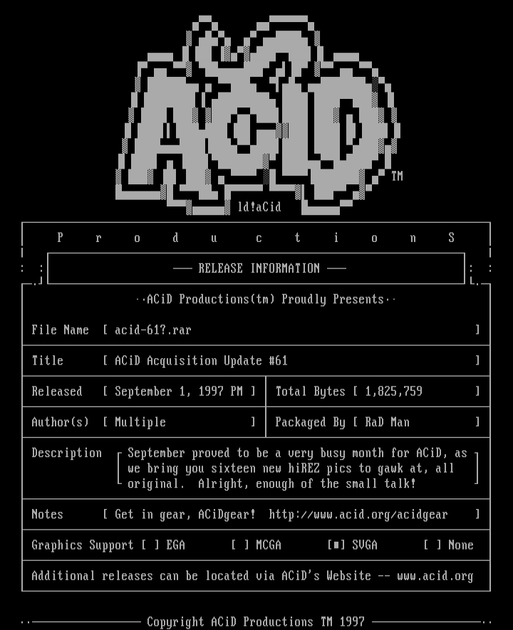 Additional releases can be located via ACiDs Website -- www.acid.org