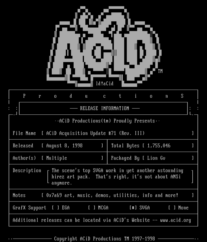 Additional releases can be located via ACiDs Website -- www.acid.org
