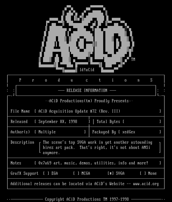 Additional releases can be located via ACiDs Website -- www.acid.org