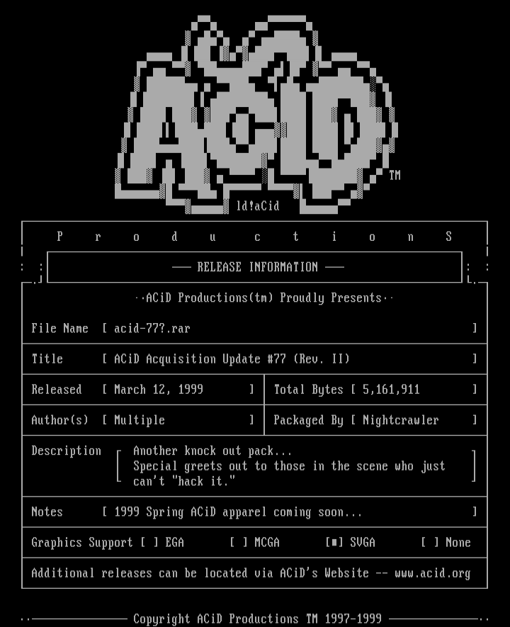 Additional releases can be located via ACiDs Website -- www.acid.org