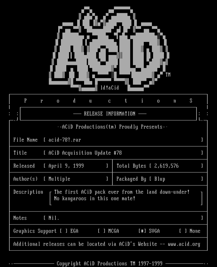 Additional releases can be located via ACiDs Website -- www.acid.org