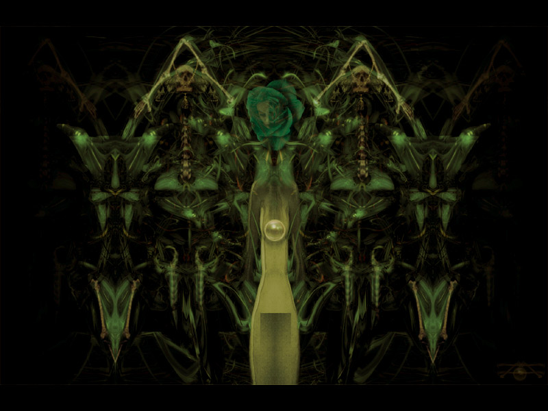 nnocence being tempted or seduced by two big slimy skeleton type