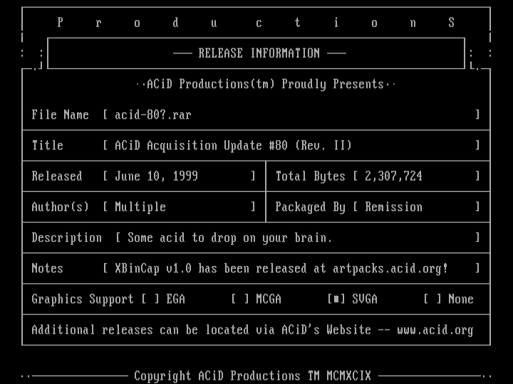 Additional releases can be located via ACiDs Website -- www.acid.org