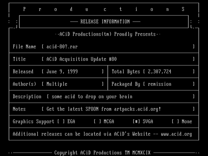 Additional releases can be located via ACiDs Website -- www.acid.org