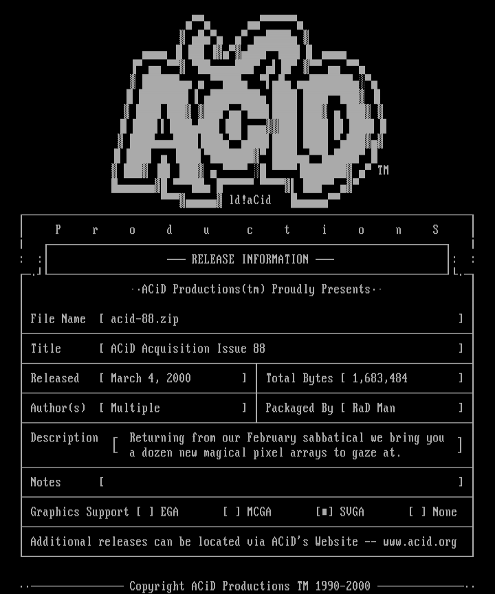 Additional releases can be located via ACiDs Website -- www.acid.org