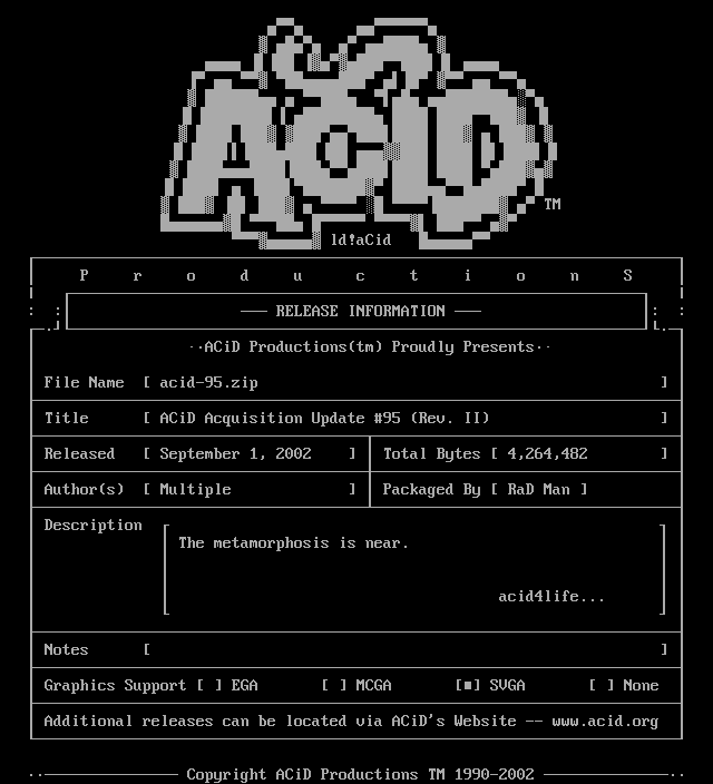 Additional releases can be located via ACiDs Website -- www.acid.org