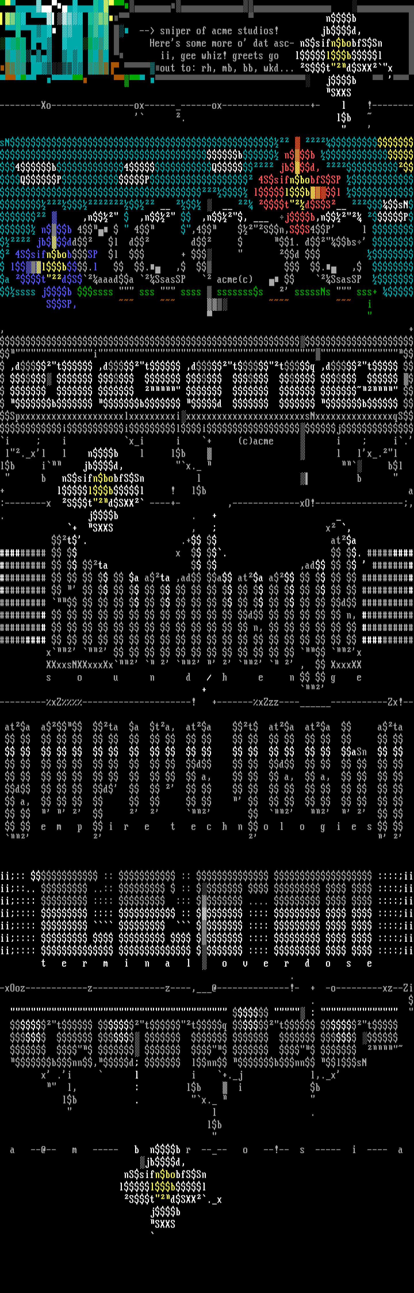 nb -- sniper of acme studios! jbd, Heres some more o dat asc- nSsifnbobfSSn ii, gee whiz! greets go llbl out to: rh, mb, bb, wkd... StdSXXx jb SXXS