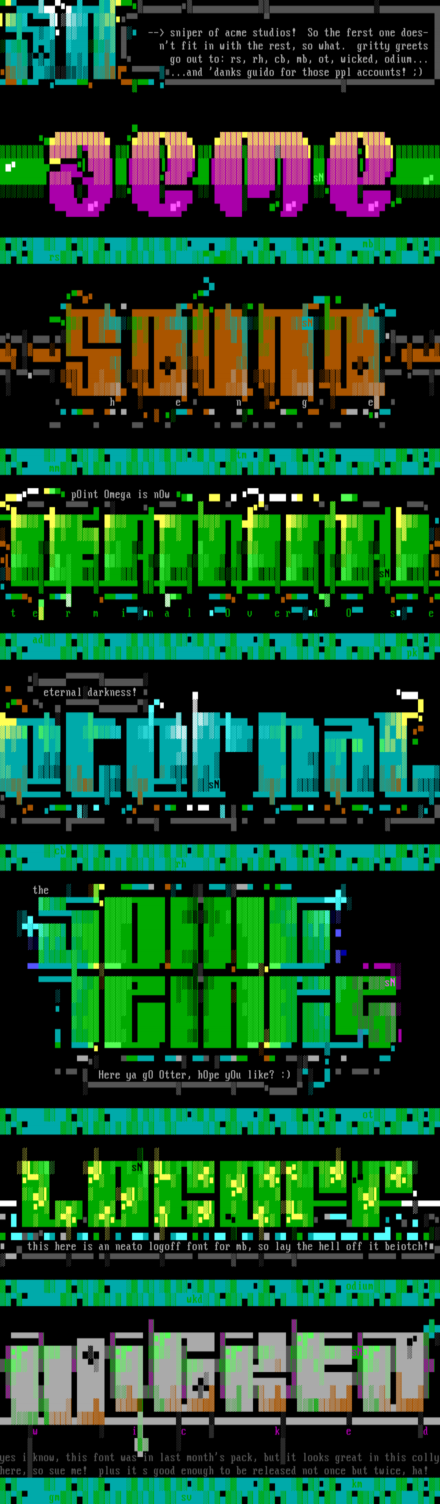 -- sniper of acme studios! So the ferst one does- nt fit in with the rest, so what. gritty greets go out to: rs, rh, cb, mb, ot, wicked, odium... ...and danks guido for those ppl accounts!
