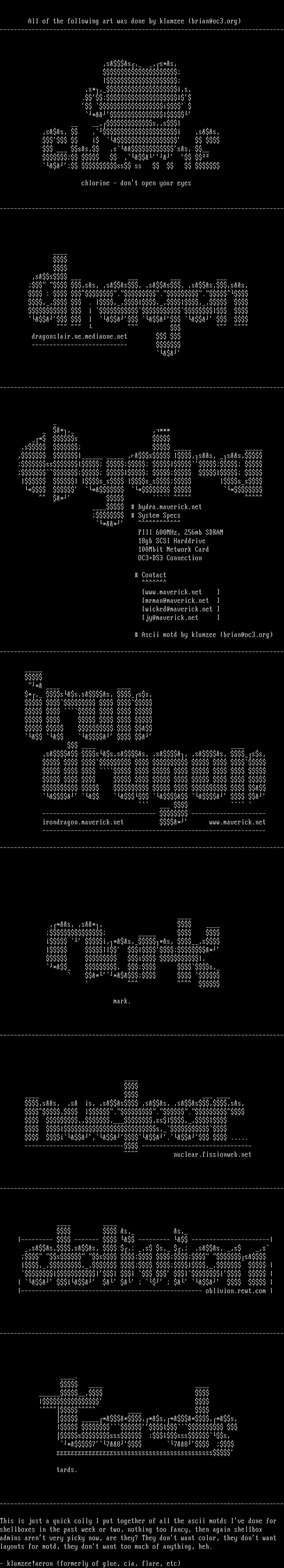 Ascii motd by klumzee brian@oc3.org
