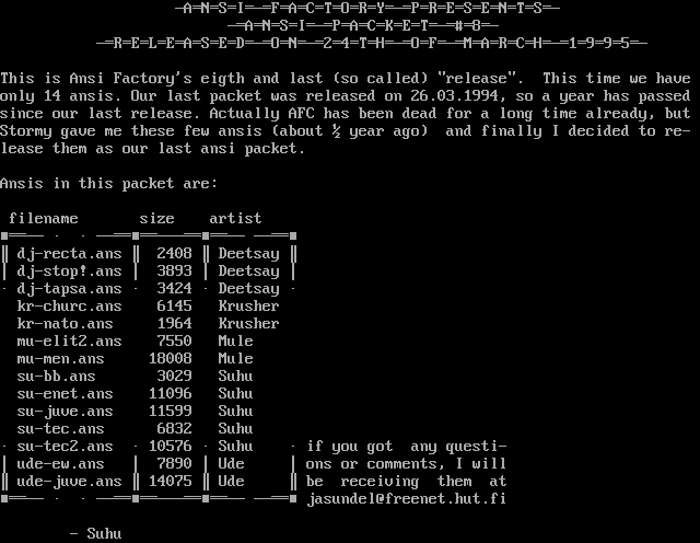 only 14 ansis. Our last packet was released on 26.03.1994, so a year has passed