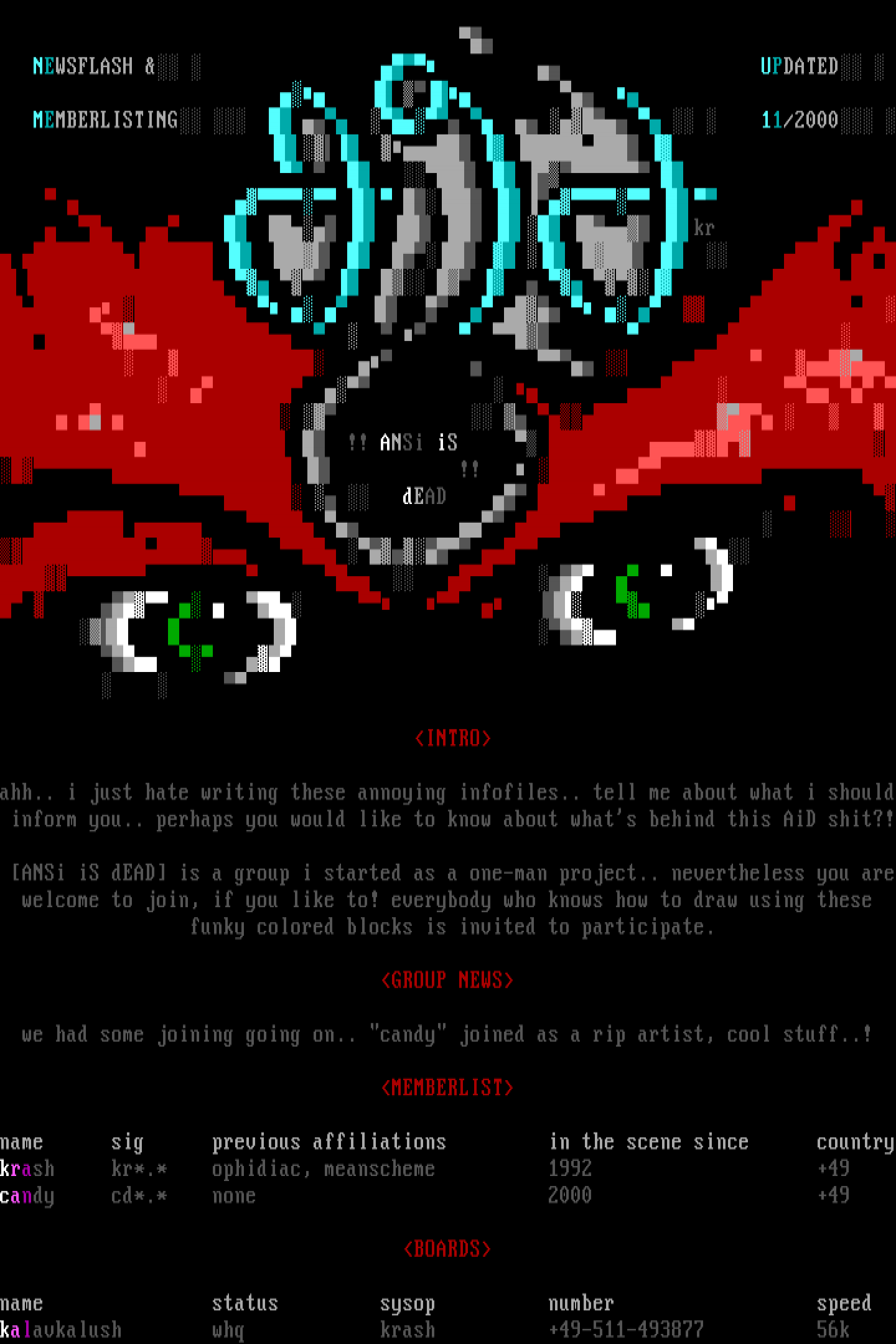 ANSi iS dEAD is a group i started as a one-man project.. nevertheless you are welcome to join, if you like to! everybody who knows how to draw using these