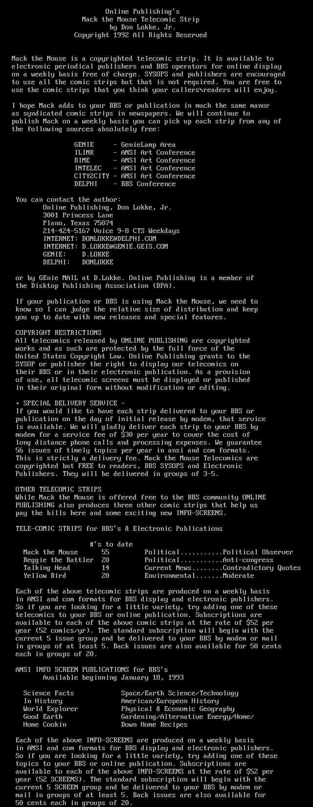While Mack the Mouse is offered free to the BBS community ONLINE