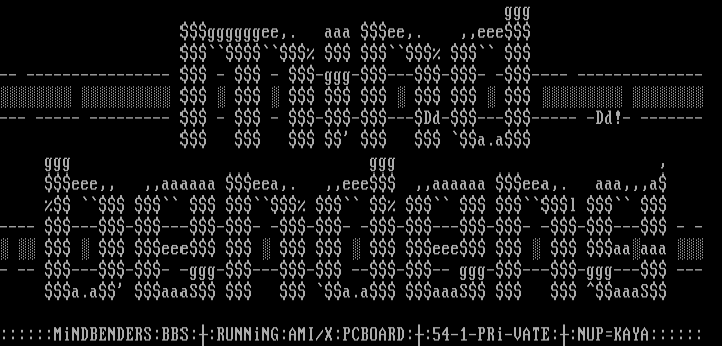 ::::::MiNDBENDERS:BBS::RUNNiNG:AMI/X:PCBOARD::54-1-PRi-VATE::NUPKAYA::::::