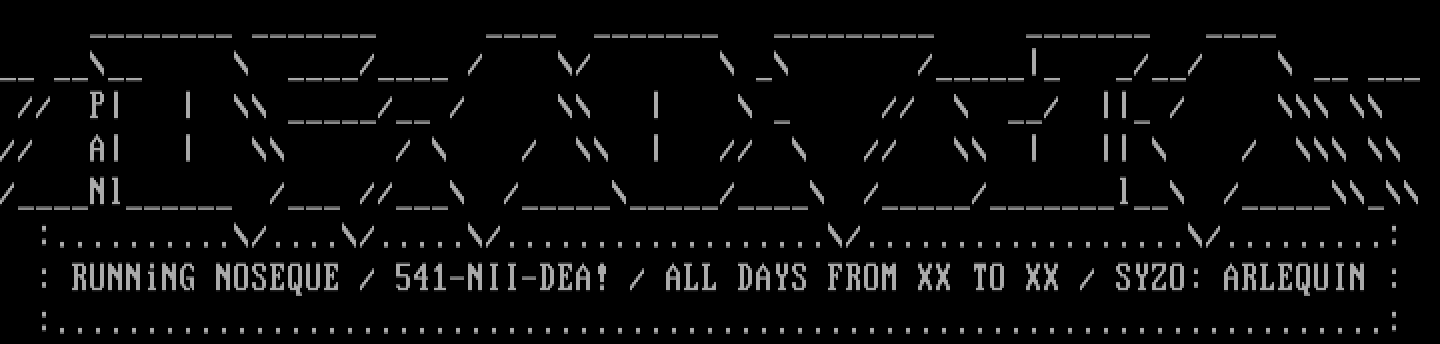 : RUNNiNG NOSEQUE / 541-NII-DEA! / ALL DAYS FROM XX TO XX / SYZO: ARLEQUIN :