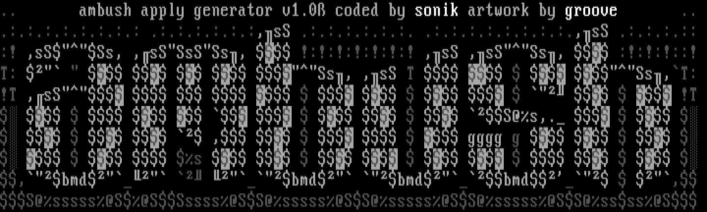 .. ambush apply generator v1.0 coded by sonik artwork by groove ..