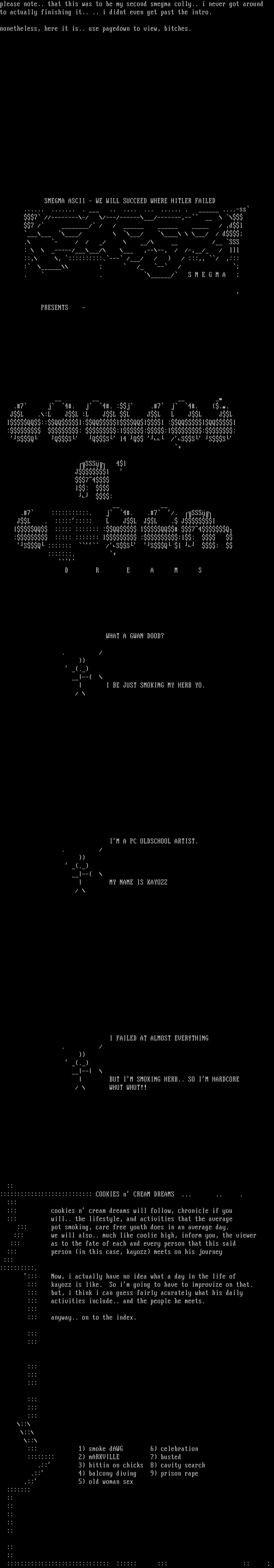 SMEGMA ASCII - WE WILL SUCCEED WHERE HITLER FAILED