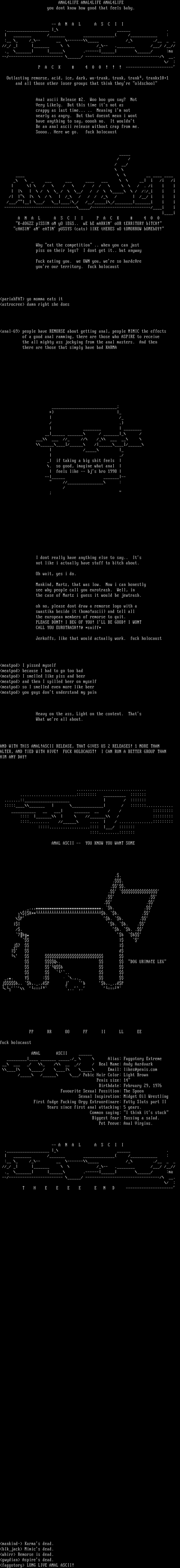faggotory LONG LIVE ANAL ASCII!