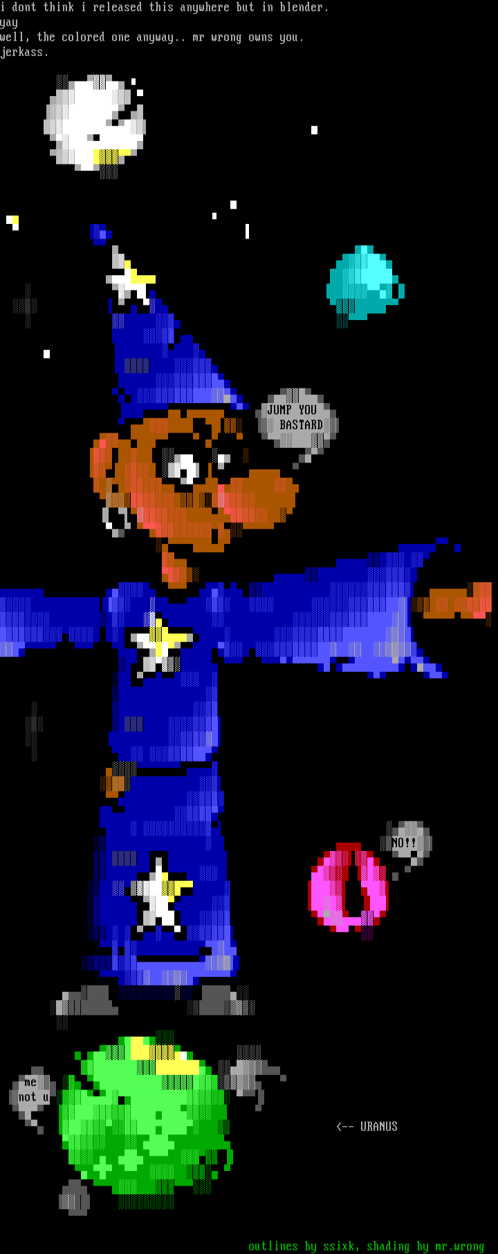 i dont think i released this anywhere but in blender. yay well, the colored one anyway.. mr wrong owns you. jerkass. JUMP YOU BASTARD
