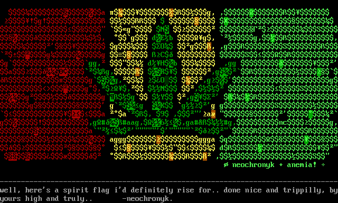 --------------------------------------------------------------------------------well, heres a spirit flag id definitely rise for.. done nice and trippilly, byyours high and truly.. -neochronyk.