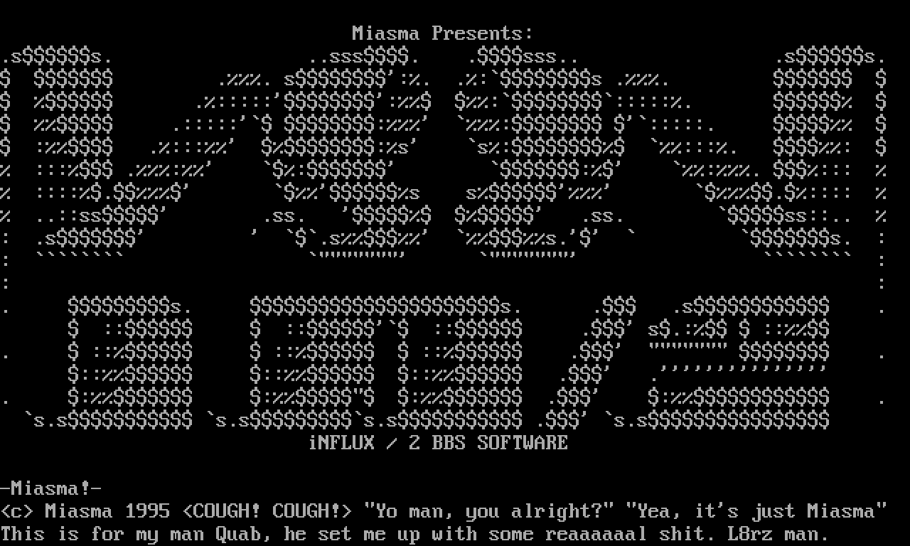 c Miasma 1995 COUGH! COUGH! Yo man, you alright? Yea, its just Miasma
