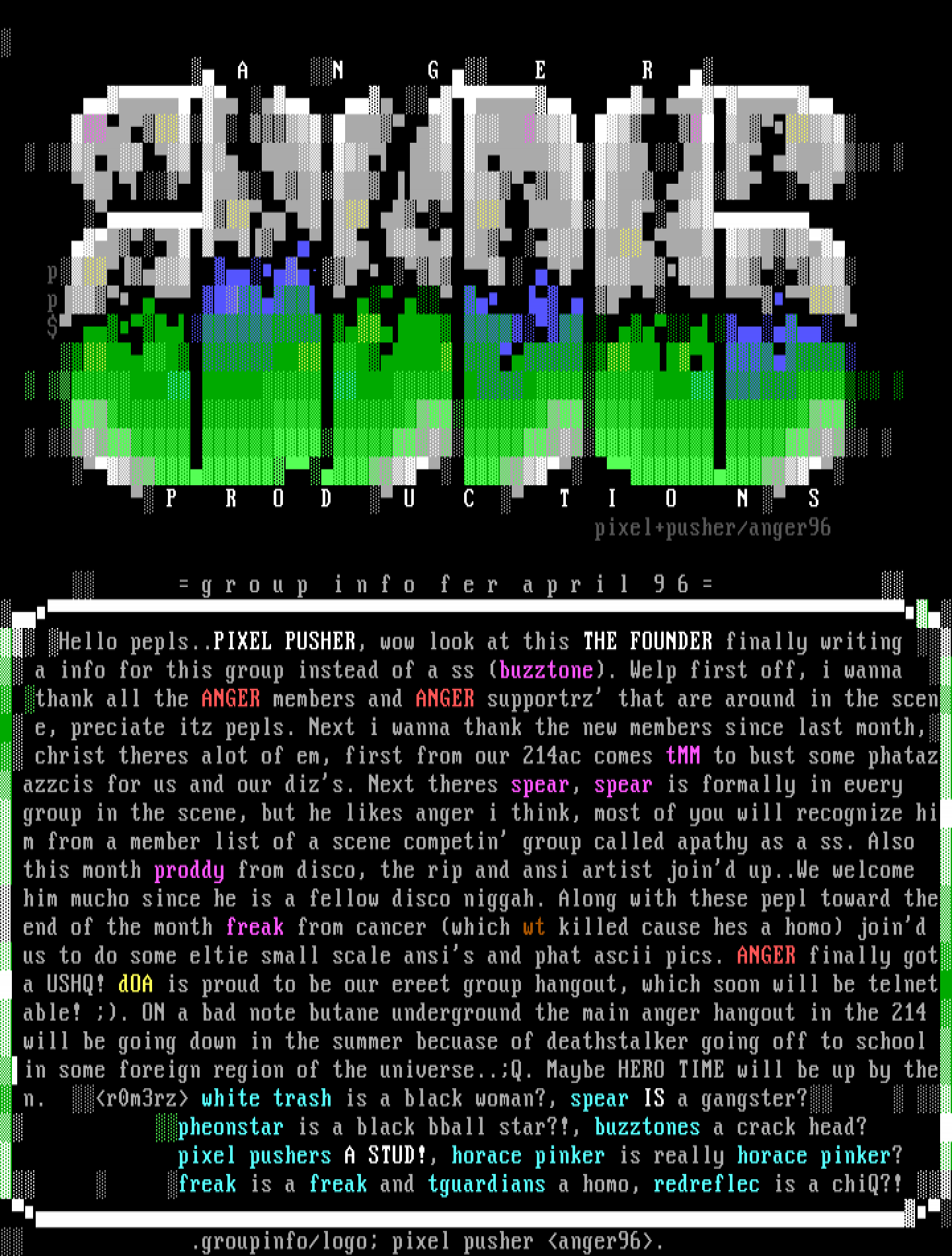 us to do some eltie small scale ansis and phat ascii pics. ANGER finally got