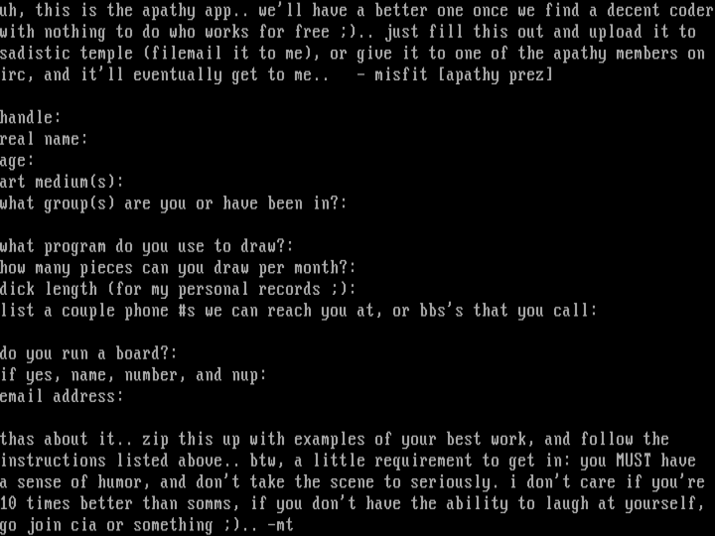 irc, and itll eventually get to me.. - misfit apathy prez