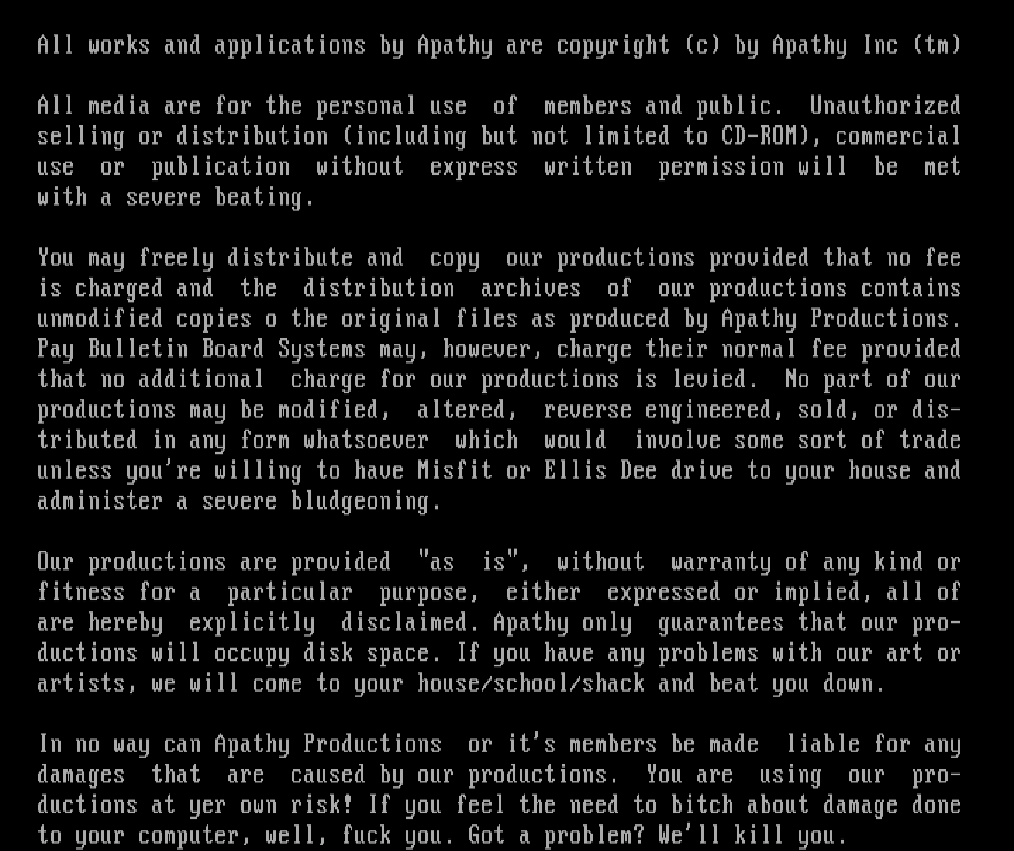 - Apathy Legal Disclaimer