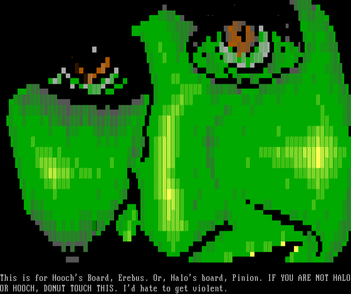 This is for Hoochs Board, Erebus. Or, Halos board, Pinion. IF YOU ARE NOT HALOOR HOOCH, DONUT TOUCH THIS. Id hate to get violent.