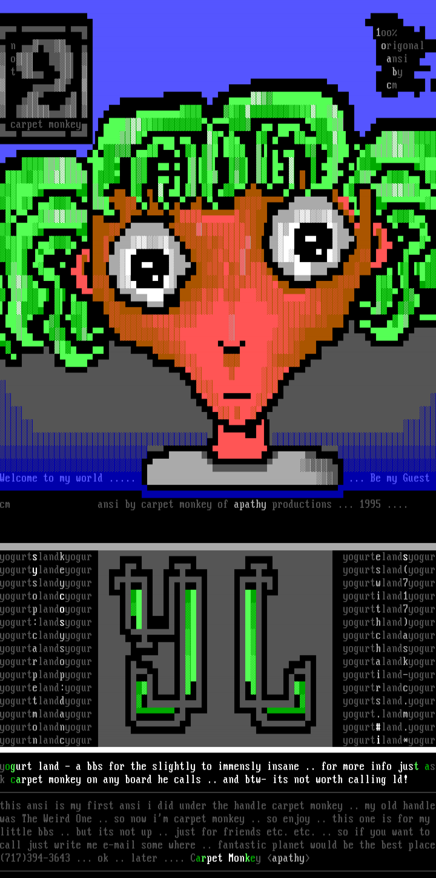 yogurt land - a bbs for the slightly to immensly insane .. for more info just a
