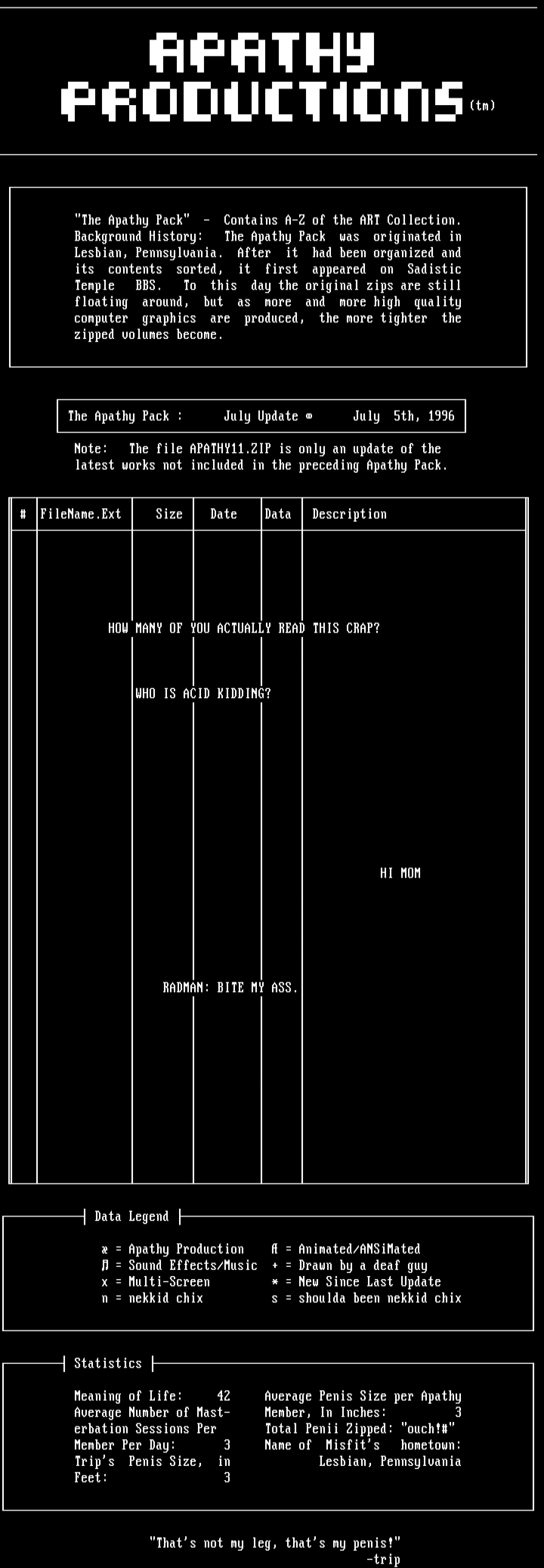 The Apathy Pack : July Update July 5th, 1996