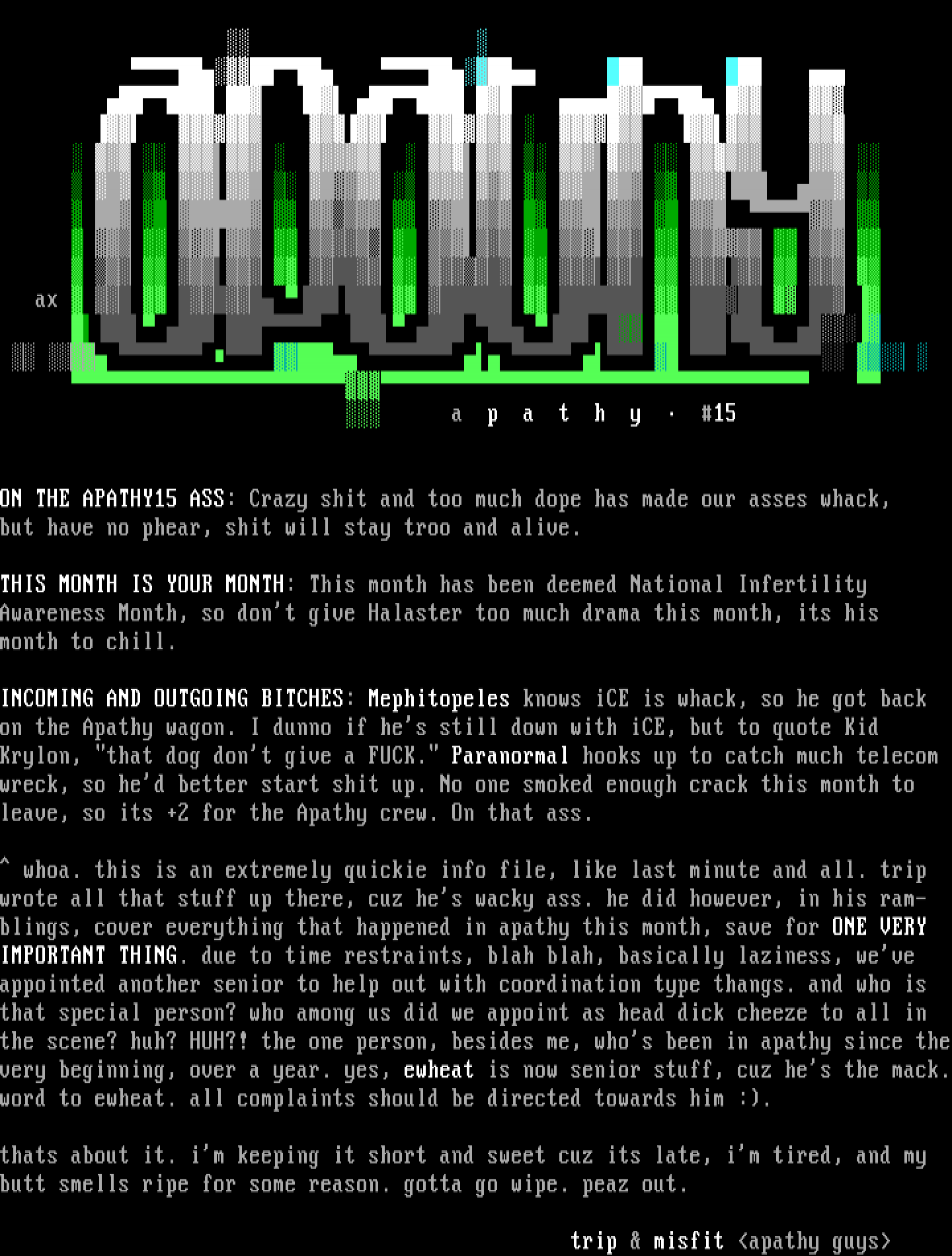 ON THE APATHY15 ASS: Crazy shit and too much dope h