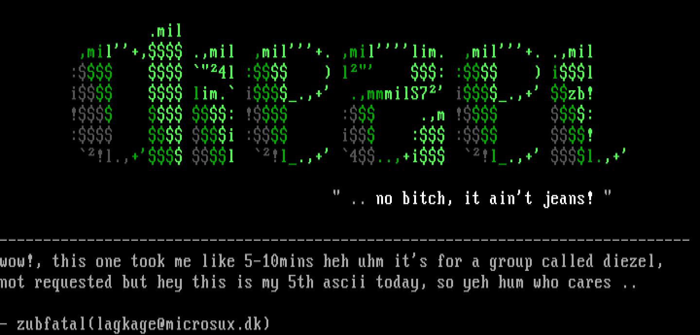 not requested but hey this is my 5th ascii today, so yeh hum who cares ..