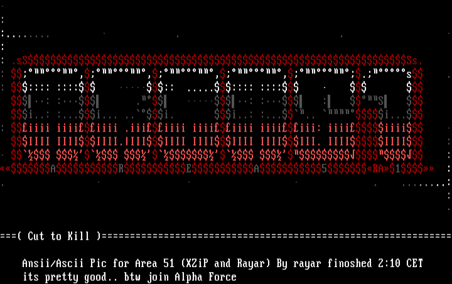 Ansii/Ascii Pic for Area 51 XZiP and Rayar By rayar finoshed 2:10 CET