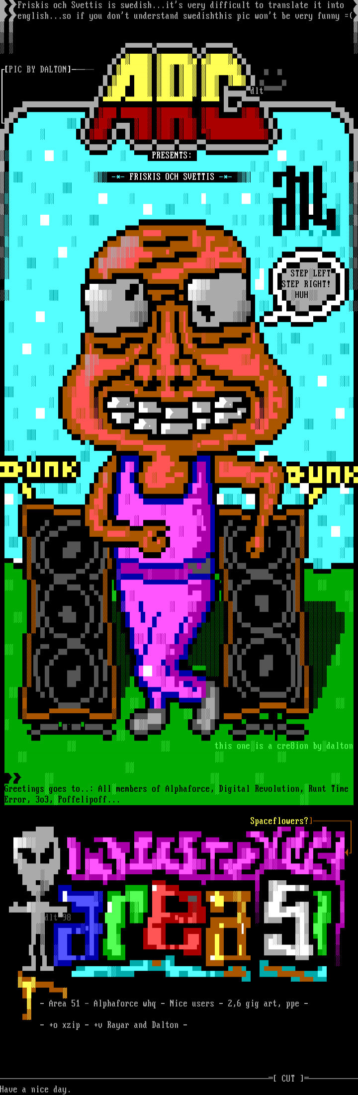 Greetingsgoes to..: Allmembers of Alphaforce,Digital Revolution,Runt Time