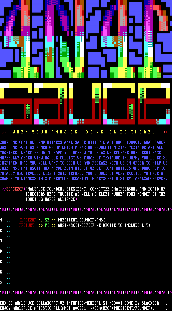 COME ONE COME ALL AND WITNESS ANAL SAUCE ARTISTIC ALLIANCE 00001. ANAL SAUCE