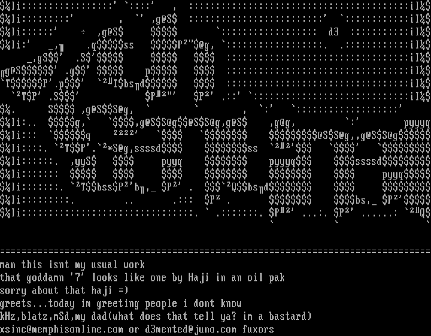 xsinc@memphisonline.com or d3mented@juno.com fuxors