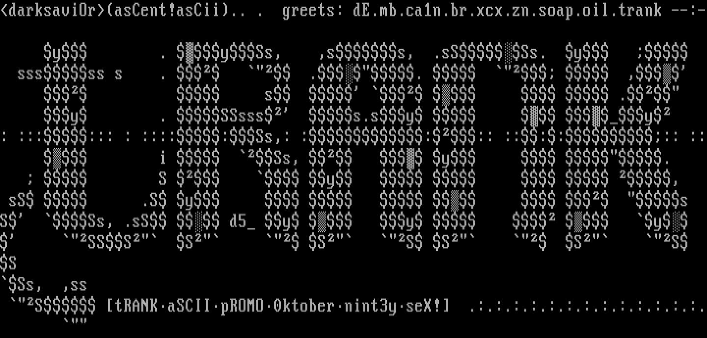 darksaviOrasCent!asCii.. . greets: dE.mb.ca1n.br.xcx.zn