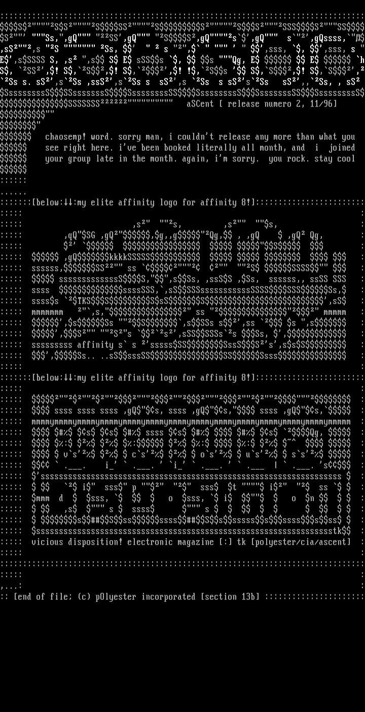 :::::::below::my elite affinity logo for affinity 8!::::::::::::::::::::::::::::: :::::: ,s s, ,s s, :::::: ,qQSG ,gQ,g,,gQg, , ,gQ ,gQ Qg, :::::: S :::::: ,gQkkkkSSSSS :::::: ssssss,SS ss S SSSS :::::: sssssssssssssSS,,sSs, ,ssSS ,Ss, ssssss,, ssSS SSS :::::: ssss ssssSSS,,sSSSSsssssssssssSSSSSSSSs, :::::: sssss TKSSSsSS,sS :::::: mmmmmmm ,s, ss mmmmm :::::: ,sSs S,sSSs s,ss s ,s :::::: ,S Ss s,sSSSSSss Ss, , :::::: sssssssss affinity s s sssssSSSssSSs,ssS :::::: ,Ss.. ..sSsssSSSSSsss :::::: ::::::::below::my elite affinity logo for affinity 8!::::::::::::::::::::::::::::: :::::: :::::: ssss ssss ssss ,gQs, ssss ,gQs, ssss ,gQs, :::::: mmmmymmmmymmmmymmmmymmmmymmmmymmmmymmmmymmmmymmmmymmmmymmmmymmmmymmmmm :::::: s s ssss s s Qg, :::::: : : : : :::::: vs cs os us ss :::::: .. i .. i .. . .. s :::::: ssssssssssssssssssssssssssssssssssssssssssssssssssssssssssssssssss :::::: i sss p sss t i ss :::::: mmm d sss, o sss, i o n :::::: ,s s ssss s :::::: sSssssssSssssssssssssss :::::: ssssssssssssssssssssssssssssssssssssssssssssssssssssssssssssssssstk :::::: vicious disposition! electronic magazine : tk polyester/cia/ascent :::::: :::::::::::::::::::::::::::::::::::::::::::::::::::::::::::::::::::::::::::::::::::::: :,...: ::: end of file c pOlyester incorporated section 13b ::::::::::::::::::::::