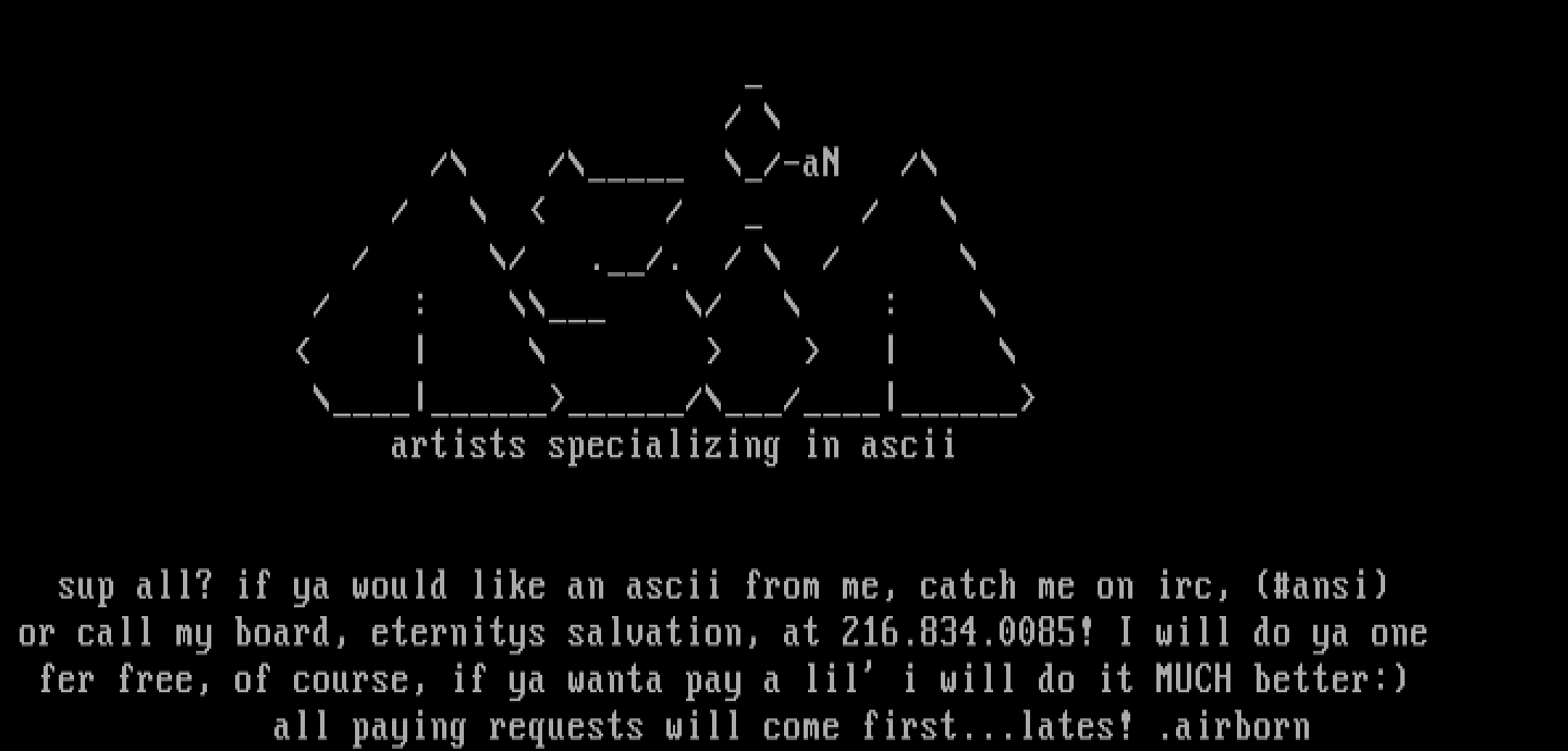 sup all? if ya would like an ascii from me, catch me on irc, ansi
