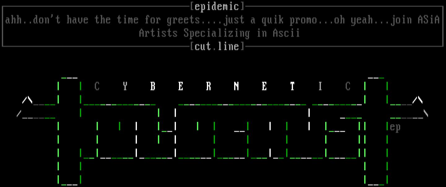 epidemicahh..dont have the time for greets....just a quik promo...oh yeah...join ASiA Artists Specializing in Ascii cut.line